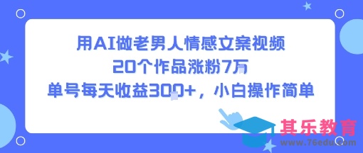 用AI做老男人情感文案视频,20个作品涨粉7W,单号每天收益3张 ,小白操作简单