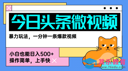 今日头条AI微视频玩法,最新前沿变现玩法拆解,零门槛,新手轻松日入5张