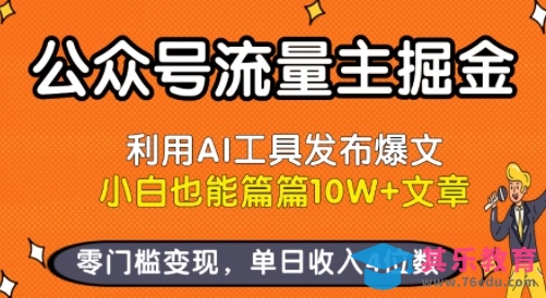 公众号流量主掘金新玩法,利用AI工具发布爆文,小白也能篇篇10W 文章,零门槛变现,单日收入4位数