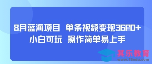 8月AI蓝海项目,单条视频变现1k 小白可玩 操作简单易上手