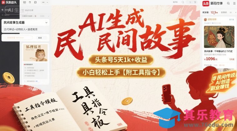 AI生成民间故事,头条号5天1k ,小白轻松上手【附工具指令】