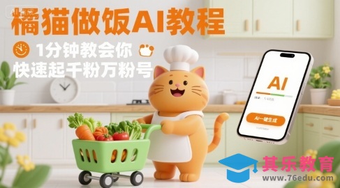 有趣的橘猫买菜做饭视频,用AI一键搞定,1分钟教会你,快速起千粉万粉号