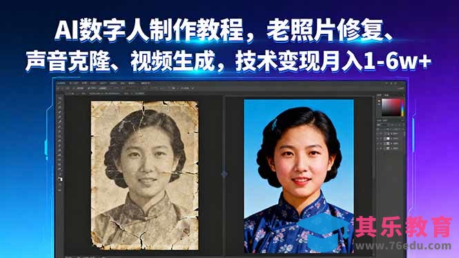 作者:视频教程网,原文地址:AI数字人制作教程,老照片修复、声音克隆、视频生成,技术变现月入1-6w发布于2025-11-05 17:13:33