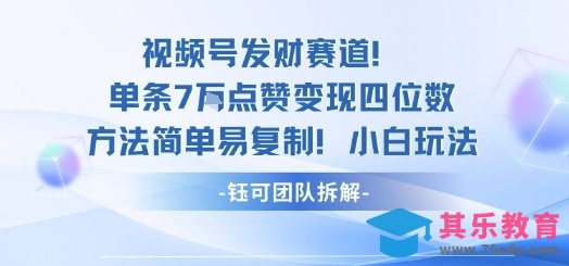 视频号发财赛道单条7W点赞变现四位数方法简单易复制小白玩法