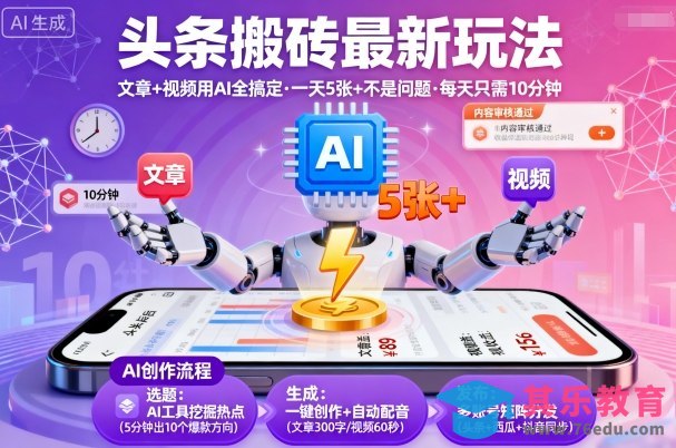 头条搬砖最新玩法,文章 视频用AI全搞定,一天5张 不是问题,每天只需10分钟