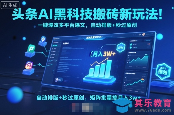 头条AI黑科技搬砖新玩法!一键爆改多平台爆文,自动排版 秒过原创,矩阵批量搞月入3w 【揭秘】