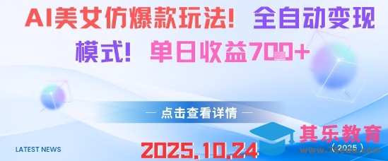 AI美女仿爆款玩法,全自动变现模式,单日收益7张