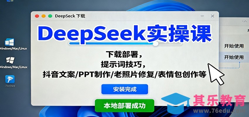 本课程聚焦DeepSeek等AI工具在电商场景的实战应用。课程涵盖DeepSeek基础操作(安装、提示词技巧、私有化部署)、多平台适配(抖音文案生成、PPT制作、思维导图设计),以及实体赋能(菜单设计、装修线稿转实景、老照片修复、动态照片制作、表情包创作)。通过系统教学,帮助学员掌握AI工具核心技能,实现电商内容高效生产与流量变现。