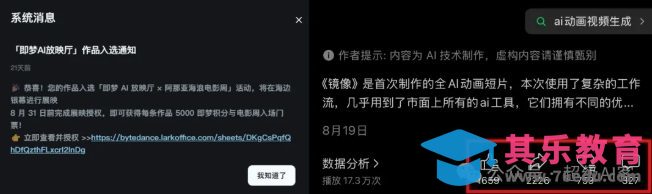 8月底入选了「即梦AI放映厅x阿那亚海浪电影周」活动。