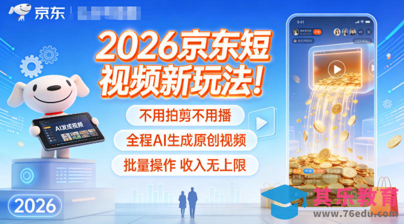 2026京东短视频新玩法!不用拍剪不用播,全程AI生成原创视频,批量操作收入无上限