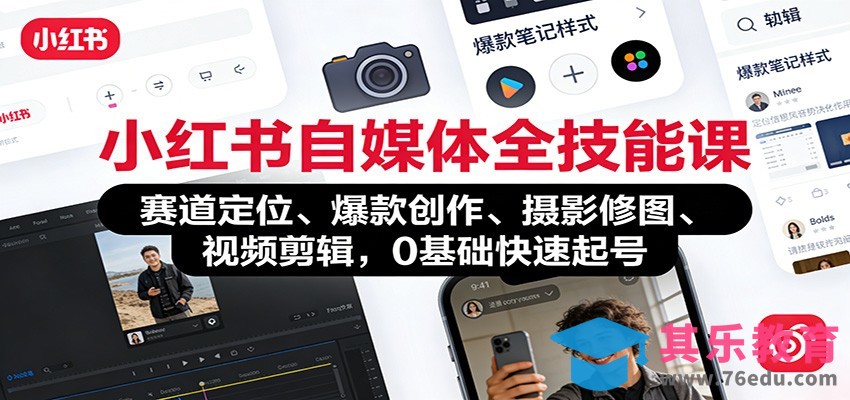 小红书起号全能课(写、拍、运营、变现)。主要内容:从写、拍、运营到变现全流程覆盖,新手也能快速上手~不管是vlog/plog创作、live图转视频,还是视频比例、卡点剪辑等实操技巧,都有详细教学。更有赛道定位、对标账号拆解、爆款笔记选题、标题封面打造等核心运营干货,破解小眼睛难题。摄影附件课教你构图、光线、修图,手机也能拍大片;文案创作、广告撰写、口播技巧全覆盖,搭配百问百答扫清障碍。