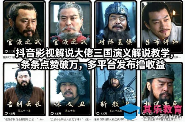 抖音影视解说大佬三国演义解说教学,条条点赞破万,多平台发布撸收益