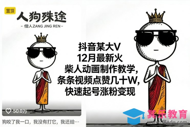 抖音某大V12月最新火柴人动画制作教学,条条视频点赞几十W,快速起号涨粉变现