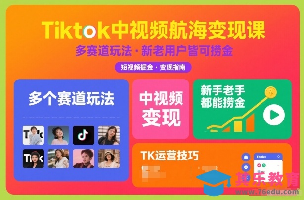 Tiktok中视频航海变现课,多个赛道玩法,新手老手都能在TK中视频捞金