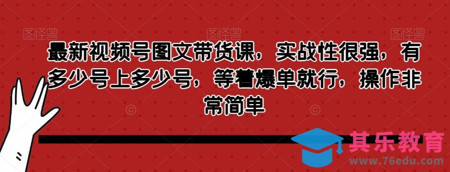 最新视频号图文带货课,实战性很强,有多少号上多少号,等着爆单就行,操作非常简单
