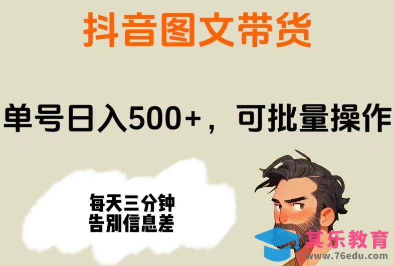 抖音图文带货,单号日入500 ,可批量操作,每天三分钟告别信息差