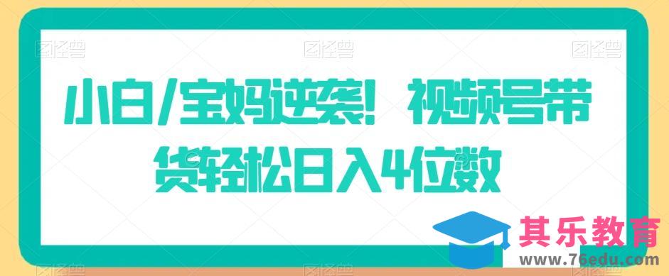 小白/宝妈逆袭!视频号带货轻松日入4位数【揭秘】