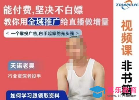天诺老吴全域推广线上课,能付费坚决不白嫖,教你用全域推广给直播做增量