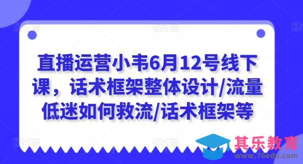 直播运营小韦6月12号线下课,话术框架整体设计/流量低迷如何救流/话术框架/付费将短视频流量打进直播间等