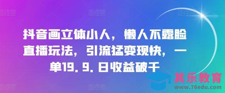 抖音画立体小人,懒人不露脸直播玩法,引流猛变现快,一单19.9.日收益破千【揭秘】