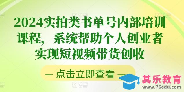 2024实拍类书单号内部培训课程,系统帮助个人创业者实现短视频带货创收