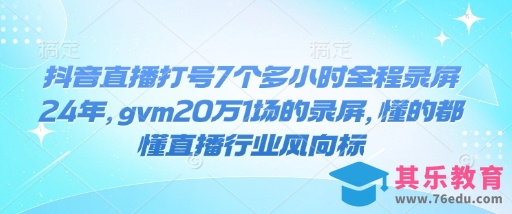 作者:视频教程网,原文地址:抖音直播打号7个多小时全程录屏24年,gvm20万1场的录屏,懂的都懂直播行业风向标发布于2024-06-17 11:01:19