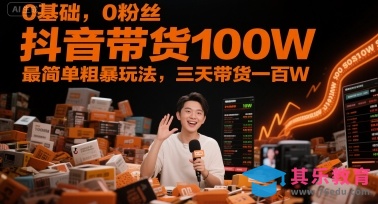 0基础,0粉丝,抖音带货100W,最简单粗暴玩法,三天带货一百W