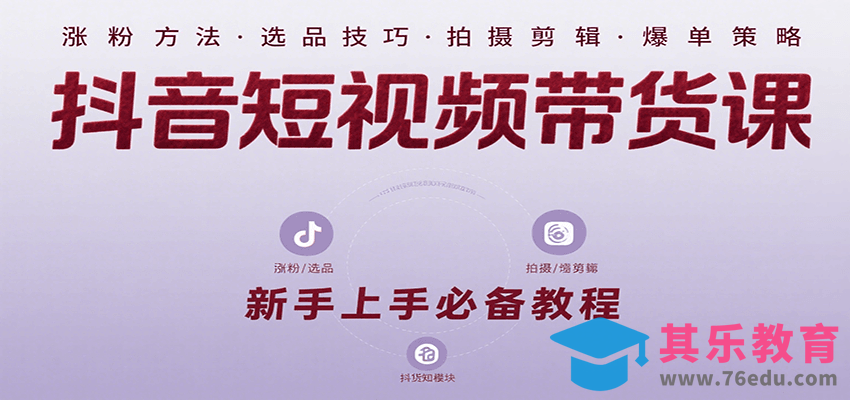 抖音短视频带货课:涵盖涨粉、选品、拍摄、剪辑等,教实操,助你从0到1实现爆单