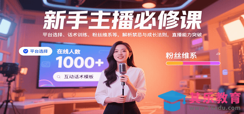 本课程系统培养新人主播核心能力,从直播平台选择、四要素掌握等基础技能,到粉丝激活技巧、土豪粉维系、节日直播策划等进阶内容,完整覆盖话术训练(含刁钻问题应答)、情商提升、冷场化解等实战场景,特别解析直播间八大禁忌与大主播成长法则,通过20节实操课程实现”平台适应-流量获取-粉丝留存-收益提升”的全链路能力突破。