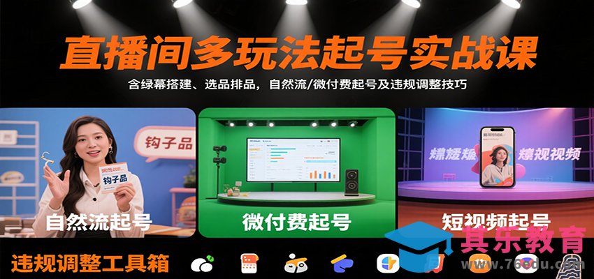 这是一套针对抖音直播带货的实战课程,系统讲解从0到1搭建自然流量直播间的完整方法论。课程包含直播间搭建、选品排品策略、自然流三场起号技术、微付费投放节点控制等核心内容,特别强化”钩子产品 亏品玩法”的流量获取技巧,以及违规后的应急调整方案,帮助新手快速掌握不依赖付费流量的直播带货体系。