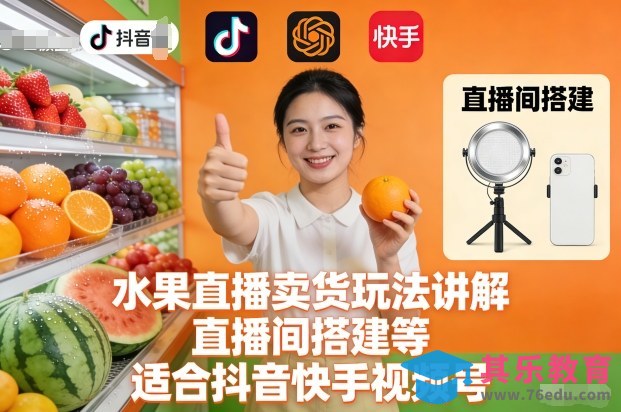 水果直播卖货玩法讲解、直播间搭建等,适合抖音快手视频号